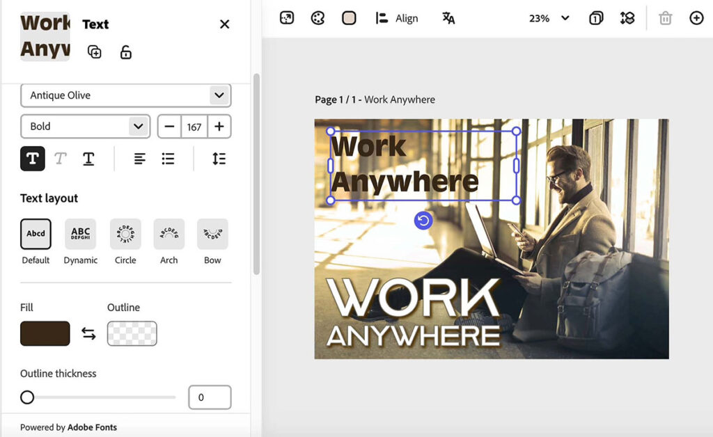 Getting fresh ideas comes from the ease of creating your brand and images by applying your styles to the media choices you make. For example, I explored more than a few different text styles using its AI feature and came up with the ones I liked.